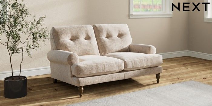 7.2.10 Buy Erin Buttoned Back Deep Relaxed Sit 2 Seater Small Sofa Multi Weave Mid Natural High Classic Turned - Mid from the Seasons online shop Click here to use our website with more accessibility support, for example screen readers