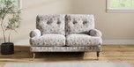7.3.1 Buy Erin Buttoned Back Deep Relaxed Sit 2 Seater Small Sofa Relaxed Linen Look Print Woodblock Floral Blue High Classic Turned Chrome Castor - Mid from the Seasons online shop Click here to use our website with more accessibility support, for example screen readers