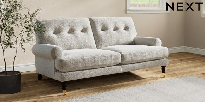 Add charm to your living space with the Erin Button Back Sofa. Its elegant scroll arms and classic button-back cushions create a timeless look. You'll love its "Relaxed Sit" cushions, specially designed for ultimate comfort. These cushions are made with clever foam and fibre, giving you a wonderfully soft, plump feel. To keep them looking their best, simply plump and turn them regularly. Plus, you can make the Erin your own by choosing from a huge range of coloured fabrics.