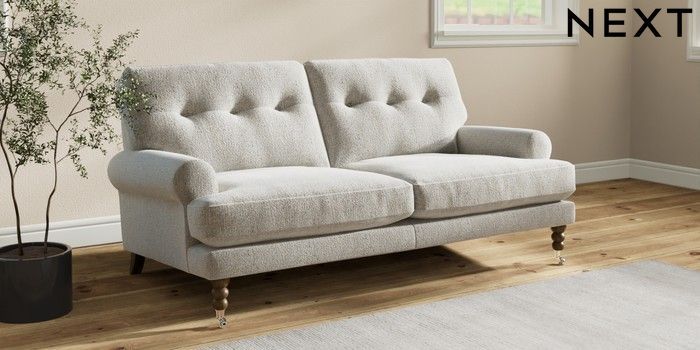 Add charm to your living space with the Erin Button Back Sofa. Its elegant scroll arms and classic button-back cushions create a timeless look. You'll love its "Relaxed Sit" cushions, specially designed for ultimate comfort. These cushions are made with clever foam and fibre, giving you a wonderfully soft, plump feel. To keep them looking their best, simply plump and turn them regularly. Plus, you can make the Erin your own by choosing from a huge range of coloured fabrics.