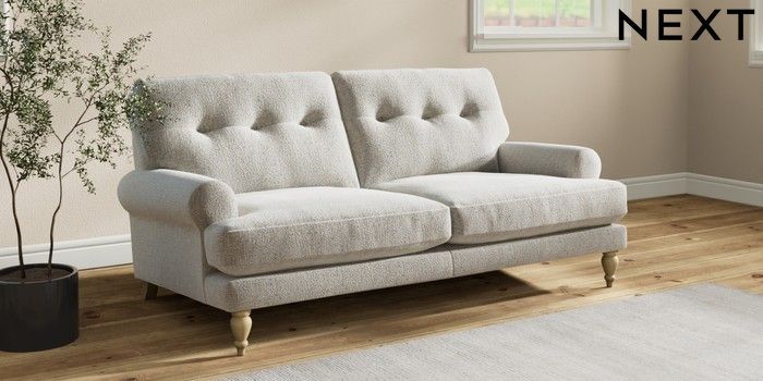 Add charm to your living space with the Erin Button Back Sofa. Its elegant scroll arms and classic button-back cushions create a timeless look. You'll love its "Relaxed Sit" cushions, specially designed for ultimate comfort. These cushions are made with clever foam and fibre, giving you a wonderfully soft, plump feel. To keep them looking their best, simply plump and turn them regularly. Plus, you can make the Erin your own by choosing from a huge range of coloured fabrics.