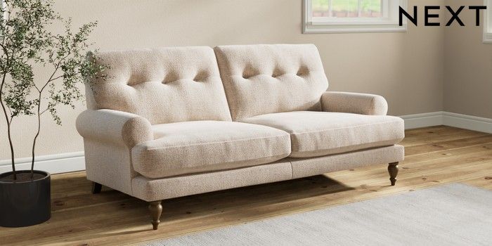 Add charm to your living space with the Erin Button Back Sofa. Its elegant scroll arms and classic button-back cushions create a timeless look. You'll love its "Relaxed Sit" cushions, specially designed for ultimate comfort. These cushions are made with clever foam and fibre, giving you a wonderfully soft, plump feel. To keep them looking their best, simply plump and turn them regularly. Plus, you can make the Erin your own by choosing from a huge range of coloured fabrics.