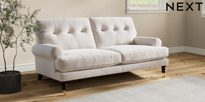 Add charm to your living space with the Erin Button Back Sofa. Its elegant scroll arms and classic button-back cushions create a timeless look. You'll love its "Relaxed Sit" cushions, specially designed for ultimate comfort. These cushions are made with clever foam and fibre, giving you a wonderfully soft, plump feel. To keep them looking their best, simply plump and turn them regularly. Plus, you can make the Erin your own by choosing from a huge range of coloured fabrics.