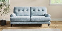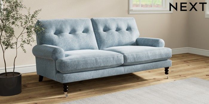7.2.10 Buy Erin Buttoned Back Deep Relaxed Sit 3 Seater Small Sofa Plush Chenille Light Blue High Classic Turned Chrome Castor - Dark from the Seasons online shop Click here to use our website with more accessibility support, for example screen readers