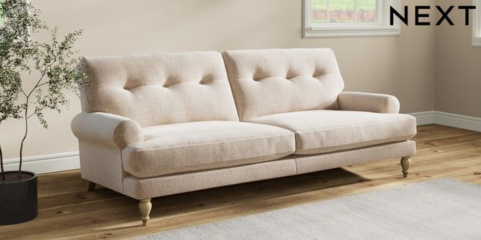 Add charm to your living space with the Erin Button Back Sofa. Its elegant scroll arms and classic button-back cushions create a timeless look. You'll love its "Relaxed Sit" cushions, specially designed for ultimate comfort. These cushions are made with clever foam and fibre, giving you a wonderfully soft, plump feel. To keep them looking their best, simply plump and turn them regularly. Plus, you can make the Erin your own by choosing from a huge range of coloured fabrics.