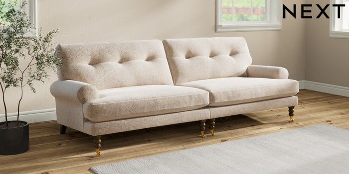 7.2.10 Buy Erin Buttoned Back Deep Relaxed Sit 4 Seater Large Sofa Multi Weave Mid Natural High Classic Turned Brass Castor - Mid from the Seasons online shop Click here to use our website with more accessibility support, for example screen readers