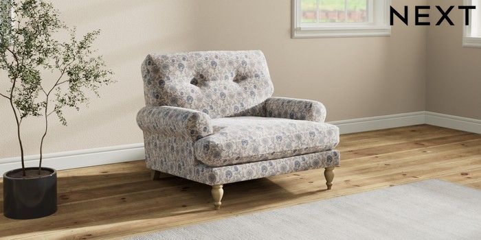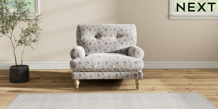 7.3.1 Buy Erin Buttoned Back Deep Relaxed Sit Armchair Relaxed Linen Look Print Woodblock Floral Blue High Classic Turned - Light from the Seasons online shop Click here to use our website with more accessibility support, for example screen readers