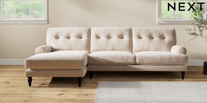 7.2.10 Buy Erin Buttoned Back Deep Relaxed Sit Medium Sofa Chaise - Left Hand Multi Weave Mid Natural High Classic Turned - Dark from the Seasons online shop Click here to use our website with more accessibility support, for example screen readers