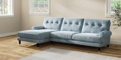 7.2.10 Buy Erin Buttoned Back Deep Relaxed Sit Medium Sofa Chaise - Left Hand Plush Chenille Light Blue High Classic Turned Chrome Castor - Dark from the Seasons online shop Click here to use our website with more accessibility support, for example screen readers