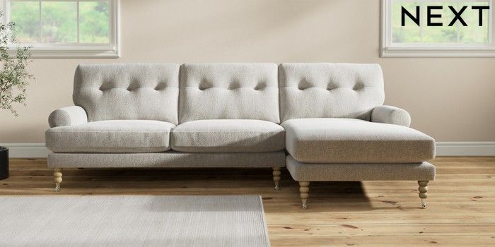Add charm to your living space with the Erin Button Back Sofa. Its elegant scroll arms and classic button-back cushions create a timeless look. You'll love its "Relaxed Sit" cushions, specially designed for ultimate comfort. These cushions are made with clever foam and fibre, giving you a wonderfully soft, plump feel. To keep them looking their best, simply plump and turn them regularly. Plus, you can make the Erin your own by choosing from a huge range of coloured fabrics.