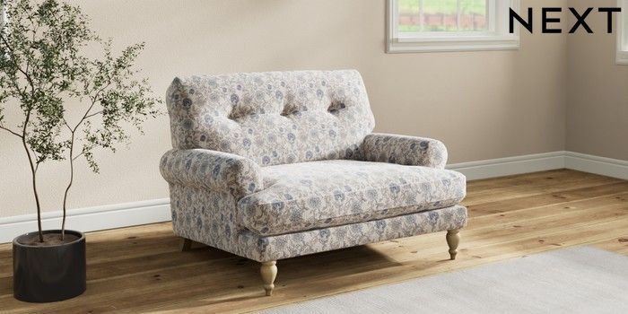 7.3.1 Buy Erin Buttoned Back Deep Relaxed Sit Snuggle Relaxed Linen Look Print Woodblock Floral Blue High Classic Turned - Light from the Seasons online shop Click here to use our website with more accessibility support, for example screen readers