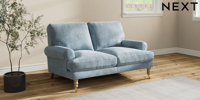7.2.10 Buy Erin Deep Relaxed Sit 2 Seater Small Sofa Plush Chenille Light Blue High Classic Turned Brass Castor - Light from the Seasons online shop Click here to use our website with more accessibility support, for example screen readers