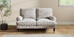 7.3.1 Buy Erin Deep Relaxed Sit 2 Seater Small Sofa Relaxed Linen Look Print Woodblock Floral Blue High Classic Turned Brass Castor - Dark from the Seasons online shop