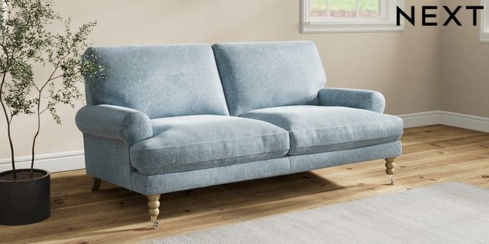 7.2.10 Buy Erin Deep Relaxed Sit 3 Seater Small Sofa Plush Chenille Light Blue High Classic Turned Chrome Castor - Light from the Seasons online shop Click here to use our website with more accessibility support, for example screen readers