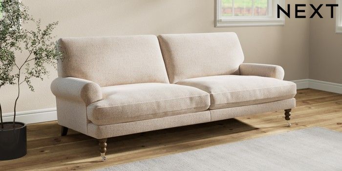 Add timeless charm to your living space with the Erin Sofa, featuring elegant scroll arms. Sink into its specially designed "Relaxed Sit" cushions, crafted with clever foam and fibre for an incredibly soft and plump feel. These cushions offer a truly relaxed sit, and with a little regular plumping and turning, they'll always look their best. They're also reversible for extra convenience! Make the Erin uniquely yours by choosing from a huge range of coloured fabrics.