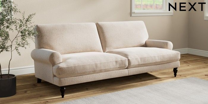 Add timeless charm to your living space with the Erin Sofa, featuring elegant scroll arms. Sink into its specially designed "Relaxed Sit" cushions, crafted with clever foam and fibre for an incredibly soft and plump feel. These cushions offer a truly relaxed sit, and with a little regular plumping and turning, they'll always look their best. They're also reversible for extra convenience! Make the Erin uniquely yours by choosing from a huge range of coloured fabrics.