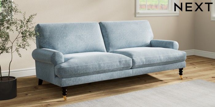 7.3.1 Buy Erin Deep Relaxed Sit 3 Seater Sofa Plush Chenille Light Blue High Classic Turned Brass Castor - Dark from the Seasons online shop Click here to use our website with more accessibility support, for example screen readers