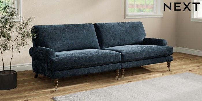 7.3.1 Buy Erin Deep Relaxed Sit 4 Seater Large Sofa Distressed Velour Midnight Blue High Classic Turned Chrome Castor - Mid from the Seasons online shop Click here to use our website with more accessibility support, for example screen readers