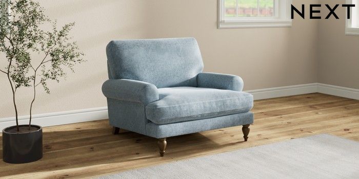 7.2.10 Buy Erin Deep Relaxed Sit Armchair Plush Chenille Light Blue High Classic Turned - Mid from the Seasons online shop Click here to use our website with more accessibility support, for example screen readers