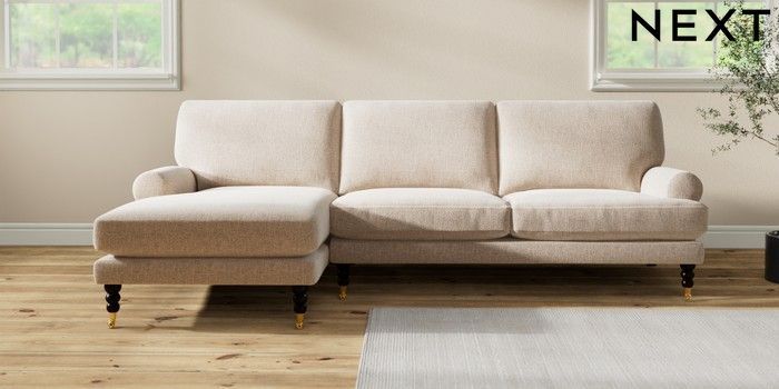 7.2.10 Buy Erin Deep Relaxed Sit Medium Sofa Chaise - Left Hand Multi Weave Mid Natural High Classic Turned Brass Castor - Dark from the Seasons online shop Click here to use our website with more accessibility support, for example screen readers