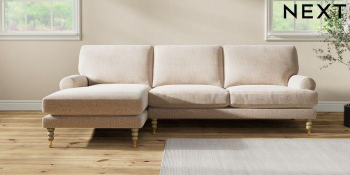 7.2.10 Buy Erin Deep Relaxed Sit Medium Sofa Chaise - Left Hand Multi Weave Mid Natural High Classic Turned Brass Castor - Light from the Seasons online shop Click here to use our website with more accessibility support, for example screen readers