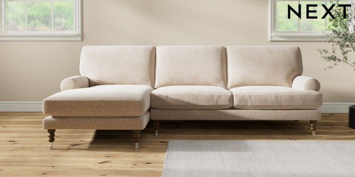 7.2.10 Buy Erin Deep Relaxed Sit Medium Sofa Chaise - Left Hand Multi Weave Mid Natural High Classic Turned Chrome Castor - Mid from the Seasons online shop Click here to use our website with more accessibility support, for example screen readers
