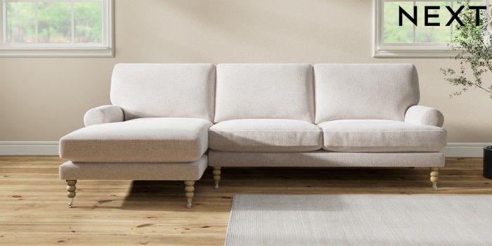 7.2.10 Buy Erin Deep Relaxed Sit Medium Sofa Chaise - Left Hand Multi Weave Oyster High Classic Turned Chrome Castor - Light from the Seasons online shop Click here to use our website with more accessibility support, for example screen readers