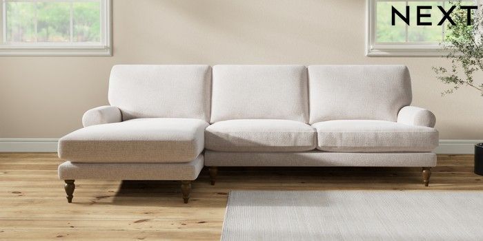 7.2.10 Buy Erin Deep Relaxed Sit Medium Sofa Chaise - Left Hand Multi Weave Oyster High Classic Turned - Mid from the Seasons online shop Click here to use our website with more accessibility support, for example screen readers