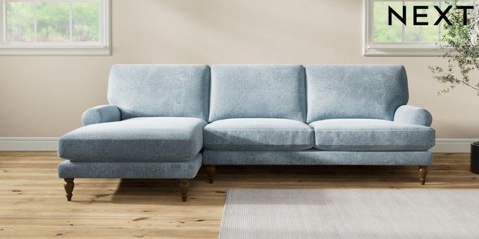 7.2.10 Buy Erin Deep Relaxed Sit Medium Sofa Chaise - Left Hand Plush Chenille Light Blue High Classic Turned - Mid from the Seasons online shop Click here to use our website with more accessibility support, for example screen readers