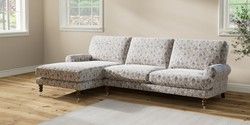 7.3.1 Buy Erin Deep Relaxed Sit Medium Sofa Chaise - Left Hand Relaxed Linen Look Print Woodblock Floral Blue High Classic Turned Chrome Castor - Mid from the Seasons online shop Click here to use our website with more accessibility support, for example screen readers