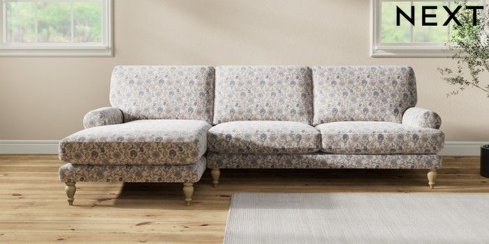 7.3.1 Buy Erin Deep Relaxed Sit Medium Sofa Chaise - Left Hand Relaxed Linen Look Print Woodblock Floral Blue High Classic Turned - Light from the Seasons online shop Click here to use our website with more accessibility support, for example screen readers