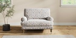 7.3.1 Buy Erin Deep Relaxed Sit Snuggle Relaxed Linen Look Print Woodblock Floral Blue High Classic Turned Chrome Castor - Mid from the Seasons online shop