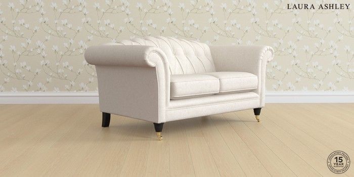 7.3.1 Buy Gloucester Button Back by Laura Ashley 2 Seater Small Sofa Anneliese Oyster Natural Low Brass Castor - Black from the Seasons online shop Click here to use our website with more accessibility support, for example screen readers
