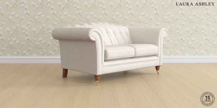 7.3.1 Buy Gloucester Button Back by Laura Ashley 2 Seater Small Sofa Anneliese Oyster Natural Low Brass Castor - Teak from the Seasons online shop Click here to use our website with more accessibility support, for example screen readers