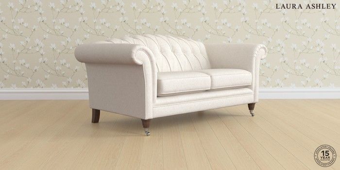 7.3.1 Buy Gloucester Button Back by Laura Ashley 2 Seater Sofa Anneliese Oyster Natural Low Chrome Castor - Chestnut from the Seasons online shop Click here to use our website with more accessibility support, for example screen readers