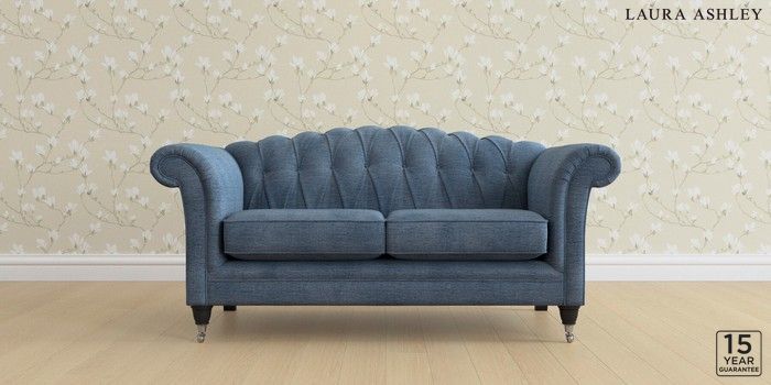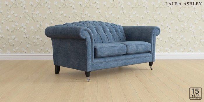 7.2.10 Buy Gloucester Button Back by Laura Ashley 2 Seater Sofa Edwin Chenille Seaspray Blue Low Chrome Castor - Black from the Seasons online shop Click here to use our website with more accessibility support, for example screen readers