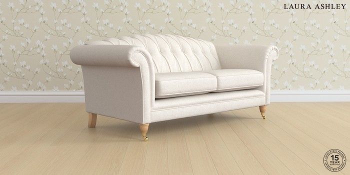 7.3.1 Buy Gloucester Button Back by Laura Ashley 3 Seater Small Sofa Anneliese Oyster Natural Low Brass Castor - Light Oak from the Seasons online shop Click here to use our website with more accessibility support, for example screen readers