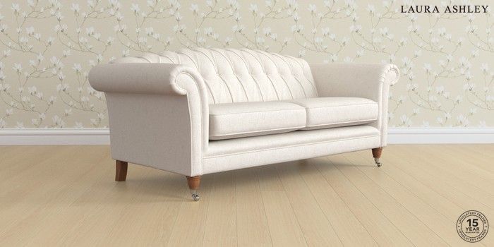 7.3.1 Buy Gloucester Button Back by Laura Ashley 3 Seater Sofa Anneliese Oyster Natural Low Chrome Castor - Teak from the Seasons online shop Click here to use our website with more accessibility support, for example screen readers