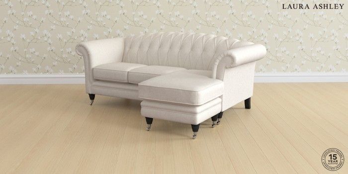 7.3.1 Buy Gloucester Button Back by Laura Ashley Medium Sofa Chaise - Universal Anneliese Oyster Natural Low Chrome Castor - Black from the Seasons online shop Click here to use our website with more accessibility support, for example screen readers