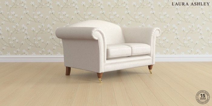 7.3.1 Buy Gloucester by Laura Ashley 2 Seater Small Sofa Anneliese Oyster Natural Low Brass Castor - Teak from the Seasons online shop Click here to use our website with more accessibility support, for example screen readers