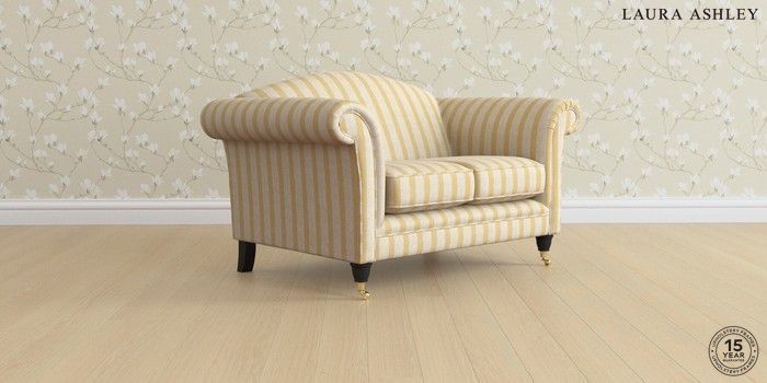 7.3.1 Buy Gloucester by Laura Ashley 2 Seater Small Sofa Kinsham Stripe Ochre Yellow Low Brass Castor - Black from the Seasons online shop Click here to use our website with more accessibility support, for example screen readers