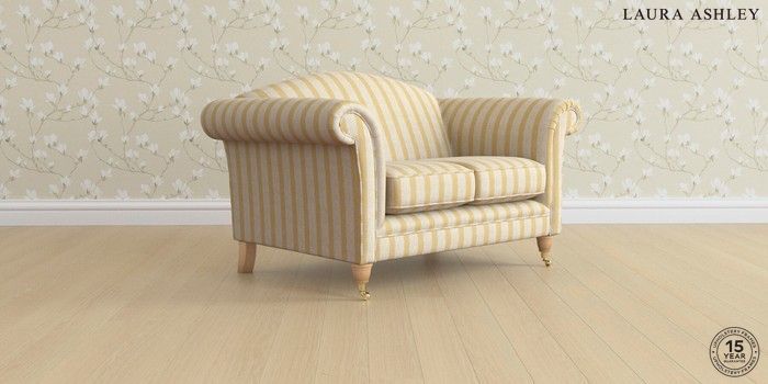 7.3.1 Buy Gloucester by Laura Ashley 2 Seater Small Sofa Kinsham Stripe Ochre Yellow Low Brass Castor - Light Oak from the Seasons online shop Click here to use our website with more accessibility support, for example screen readers