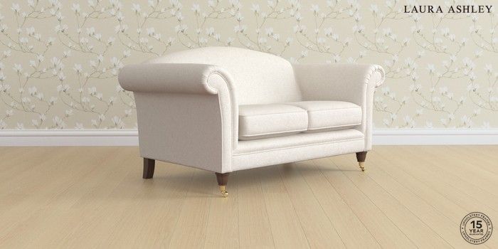 7.3.1 Buy Gloucester by Laura Ashley 2 Seater Sofa Anneliese Oyster Natural Low Brass Castor - Chestnut from the Seasons online shop Click here to use our website with more accessibility support, for example screen readers
