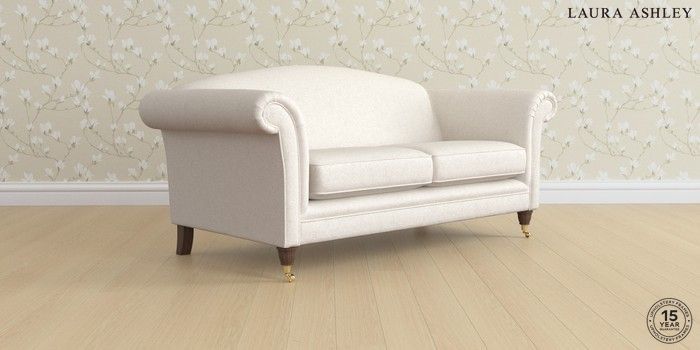 7.3.1 Buy Gloucester by Laura Ashley 3 Seater Small Sofa Anneliese Oyster Natural Low Brass Castor - Chestnut from the Seasons online shop Click here to use our website with more accessibility support, for example screen readers