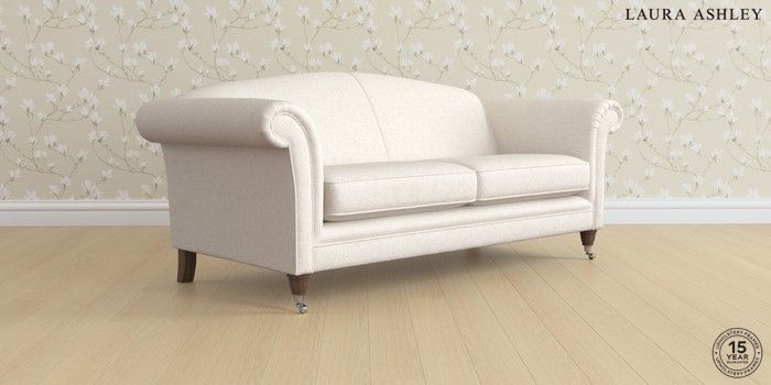 7.3.1 Buy Gloucester by Laura Ashley 3 Seater Sofa Anneliese Oyster Natural Low Chrome Castor - Chestnut from the Seasons online shop Click here to use our website with more accessibility support, for example screen readers