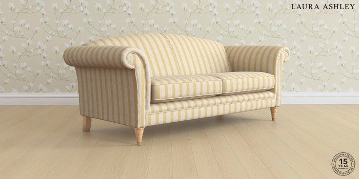 7.3.1 Buy Gloucester by Laura Ashley 3 Seater Sofa Kinsham Stripe Ochre Yellow Low Turned - Light Oak from the Seasons online shop Click here to use our website with more accessibility support, for example screen readers