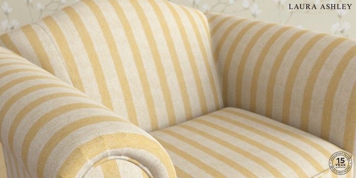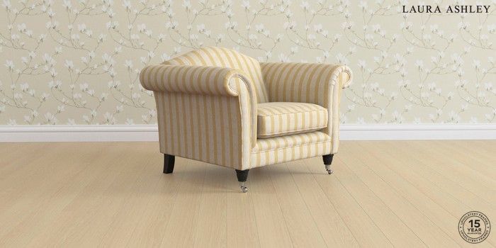 7.3.1 Buy Gloucester by Laura Ashley Armchair Kinsham Stripe Ochre Yellow Low Chrome Castor - Black from the Seasons online shop Click here to use our website with more accessibility support, for example screen readers