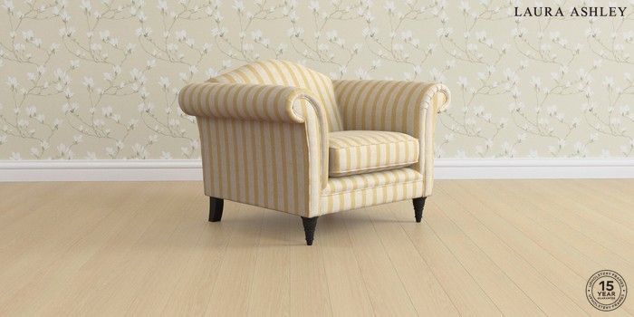 7.3.1 Buy Gloucester by Laura Ashley Armchair Kinsham Stripe Ochre Yellow Low Turned - Black from the Seasons online shop Click here to use our website with more accessibility support, for example screen readers