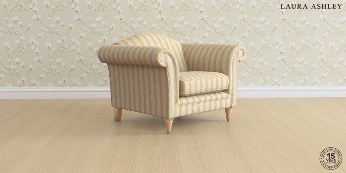 7.3.1 Buy Gloucester by Laura Ashley Armchair Kinsham Stripe Ochre Yellow Low Turned - Light Oak from the Seasons online shop Click here to use our website with more accessibility support, for example screen readers