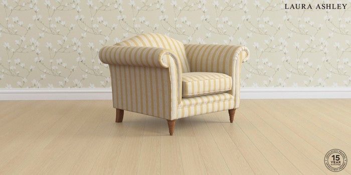 7.3.1 Buy Gloucester by Laura Ashley Armchair Kinsham Stripe Ochre Yellow Low Turned - Teak from the Seasons online shop Click here to use our website with more accessibility support, for example screen readers